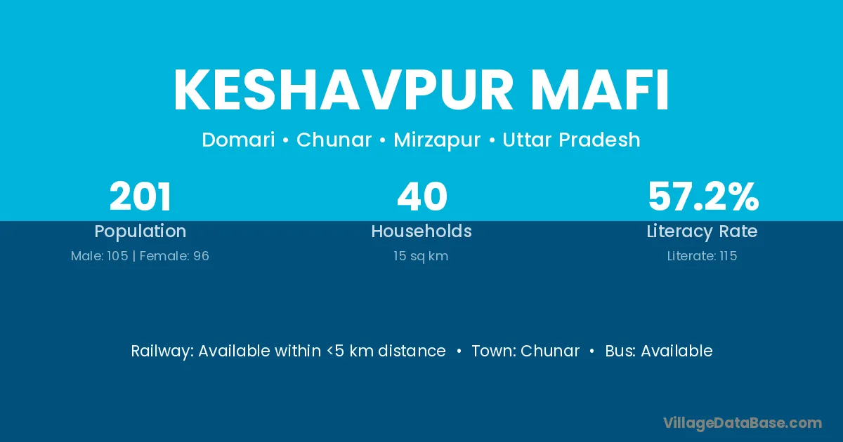 Keshavpur Mafi village has a total population of 201 people, of which 105 are males and 96 are females.