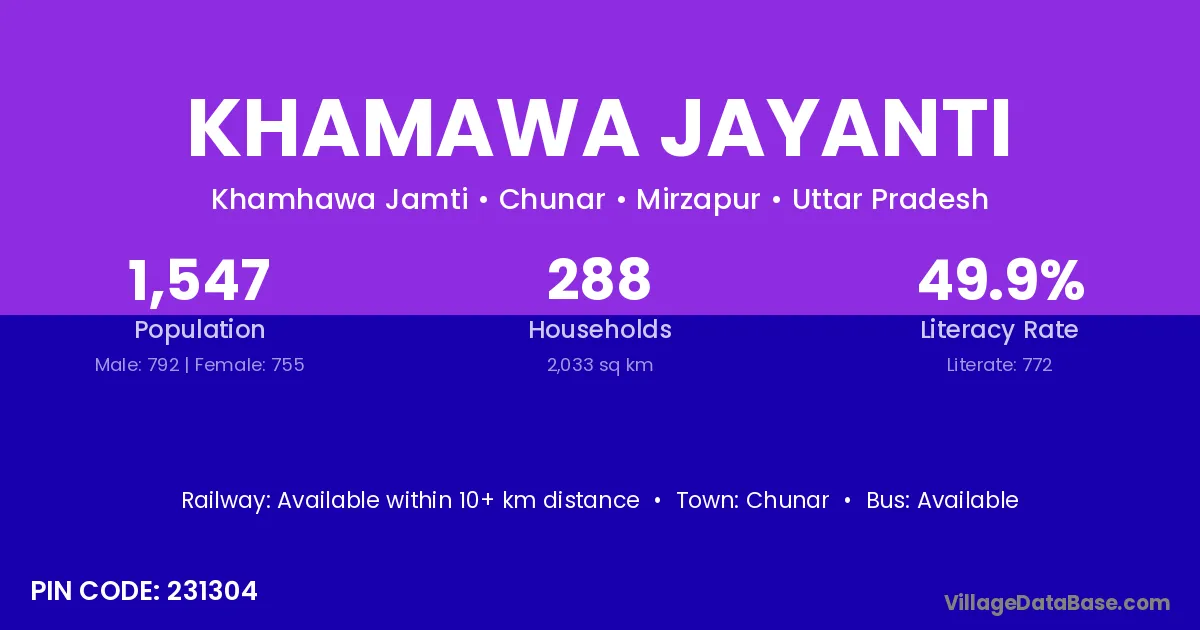 Khamawa Jayanti village has a total population of 1,547 people, of which 792 are males and 755 are females.