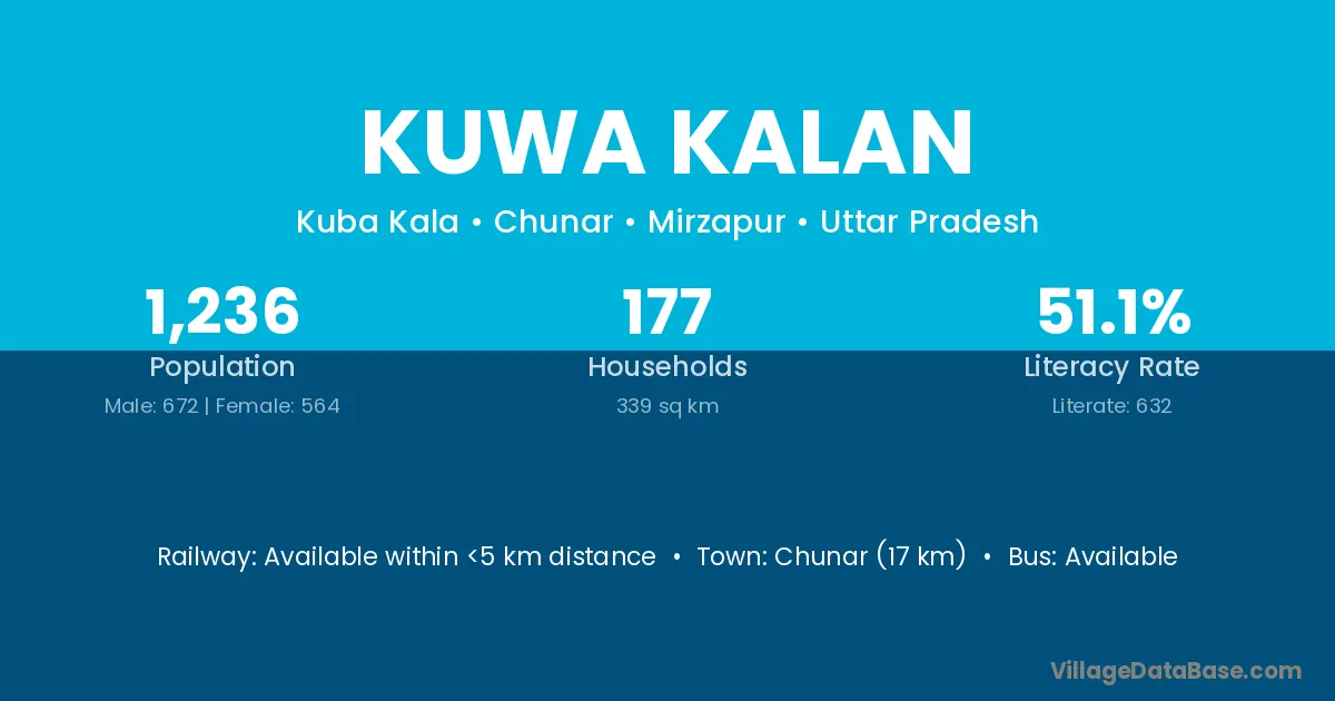 Chunar (17 km) is the nearest town to Kuwa Kalan village for major economic activities and is located approximately 17 km away.