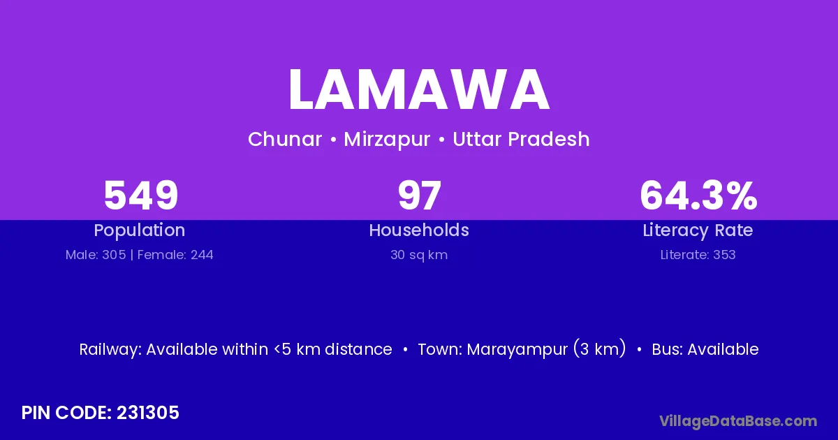 According to Census 2011 information, the village code of Lamawa village is 231305.