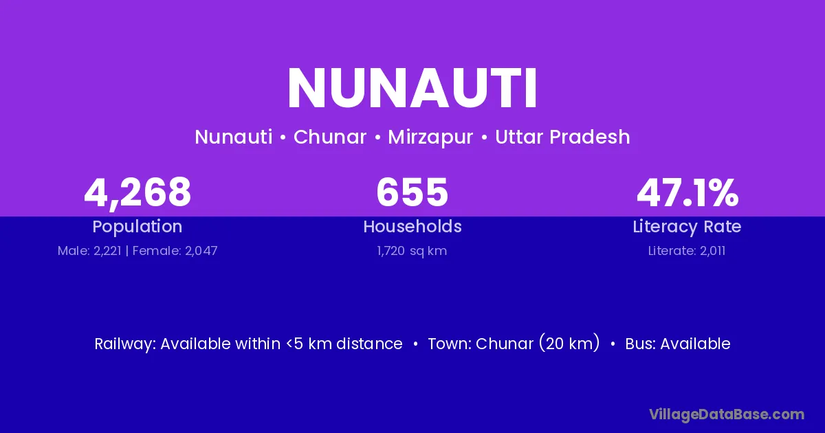 Chunar (20 km) is the nearest town to Nunauti village for major economic activities and is located approximately 20 km away.
