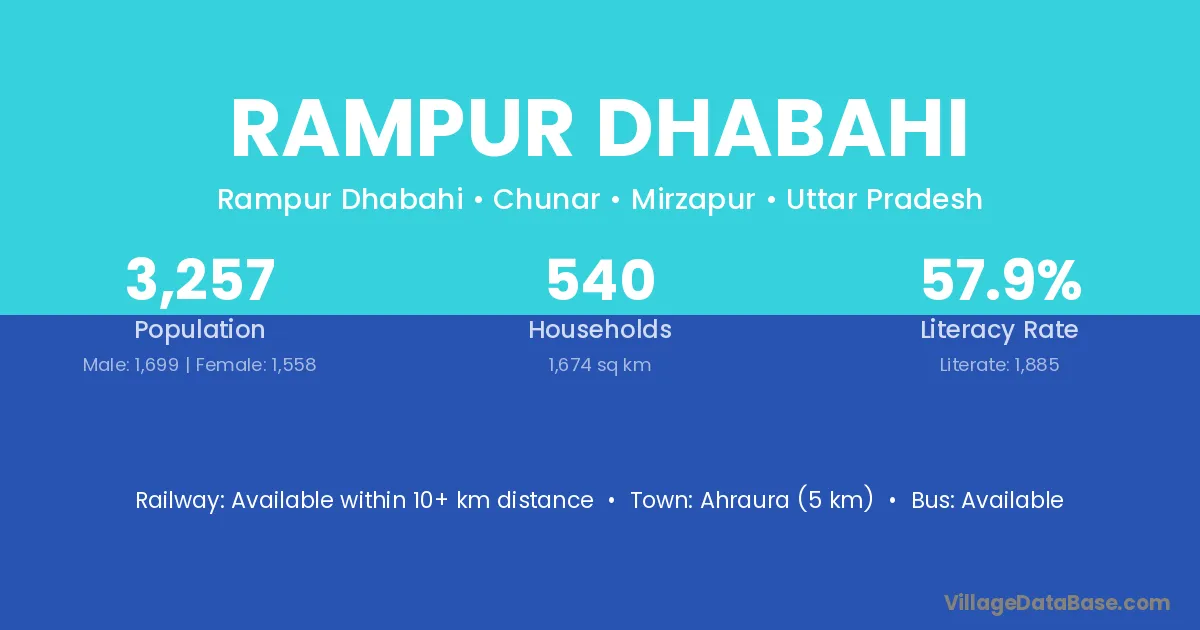 Ahraura (5 km) is the nearest town to Rampur Dhabahi village for major economic activities and is located approximately 5 km away.