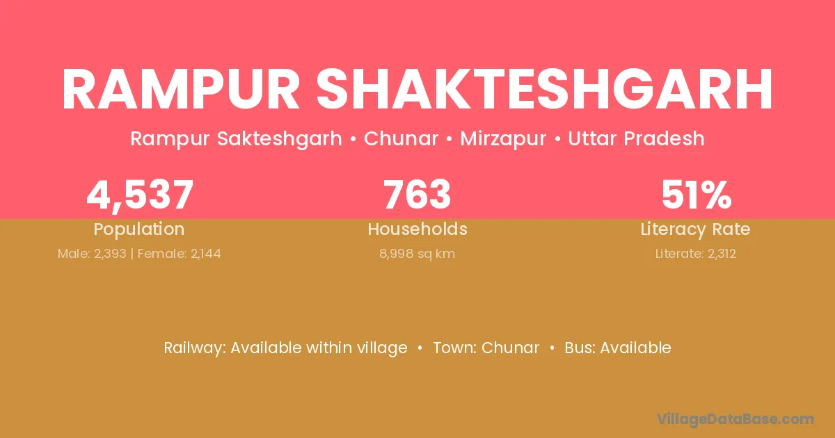 Rampur Shakteshgarh village has a total population of 4,537 people, of which 2,393 are males and 2,144 are females.