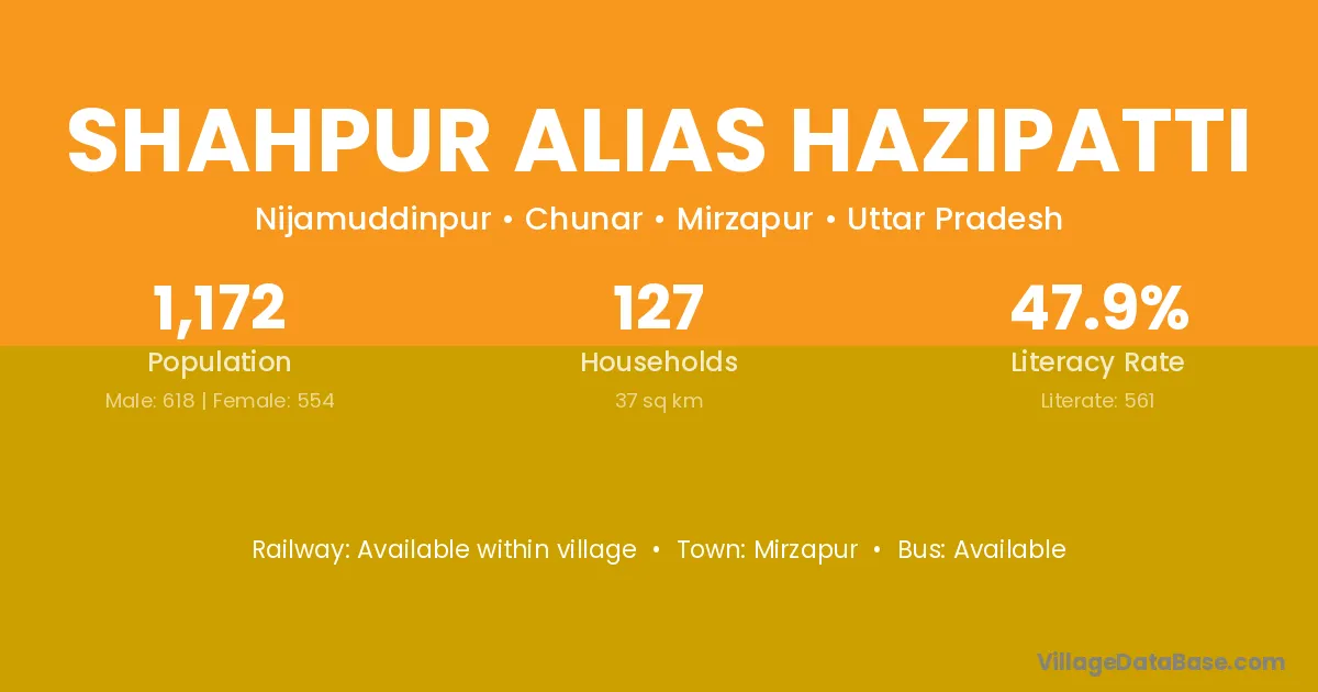 Shahpur Alias Hazipatti village has a total population of 1,172 people, of which 618 are males and 554 are females.
