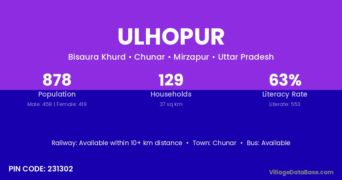 Chunar is the nearest town to Ulhopur village for major economic activities