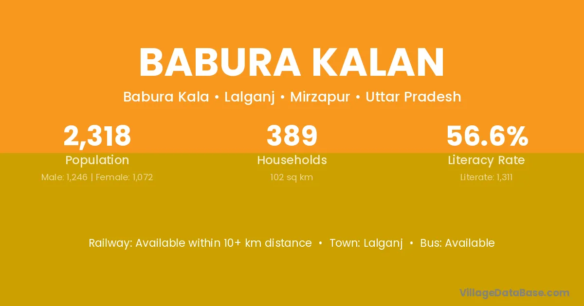 Babura Kalan village has a total population of 2,318 people, of which 1,246 are males and 1,072 are females.
