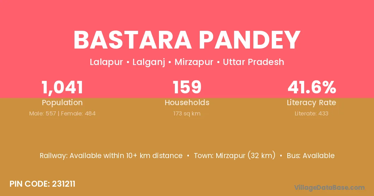 Mirzapur (32 km) is the nearest town to Bastara Pandey village for major economic activities and is located approximately 32 km away.
