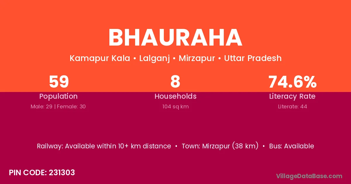 Mirzapur (38 km) is the nearest town to Bhauraha village for major economic activities and is located approximately 38 km away.