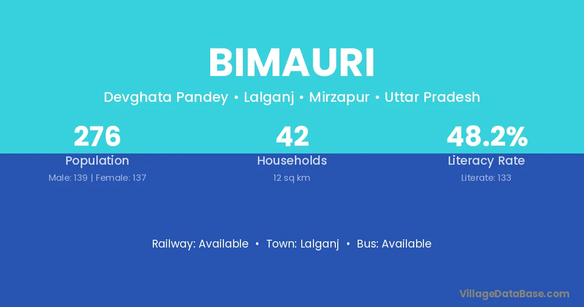 Bimauri village has a total population of 276 people, of which 139 are males and 137 are females.
