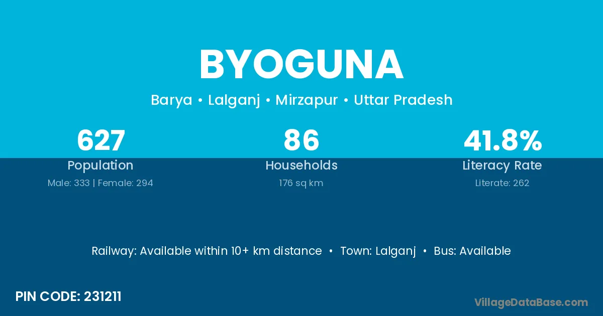 Byoguna village has a total population of 627 people, of which 333 are males and 294 are females.