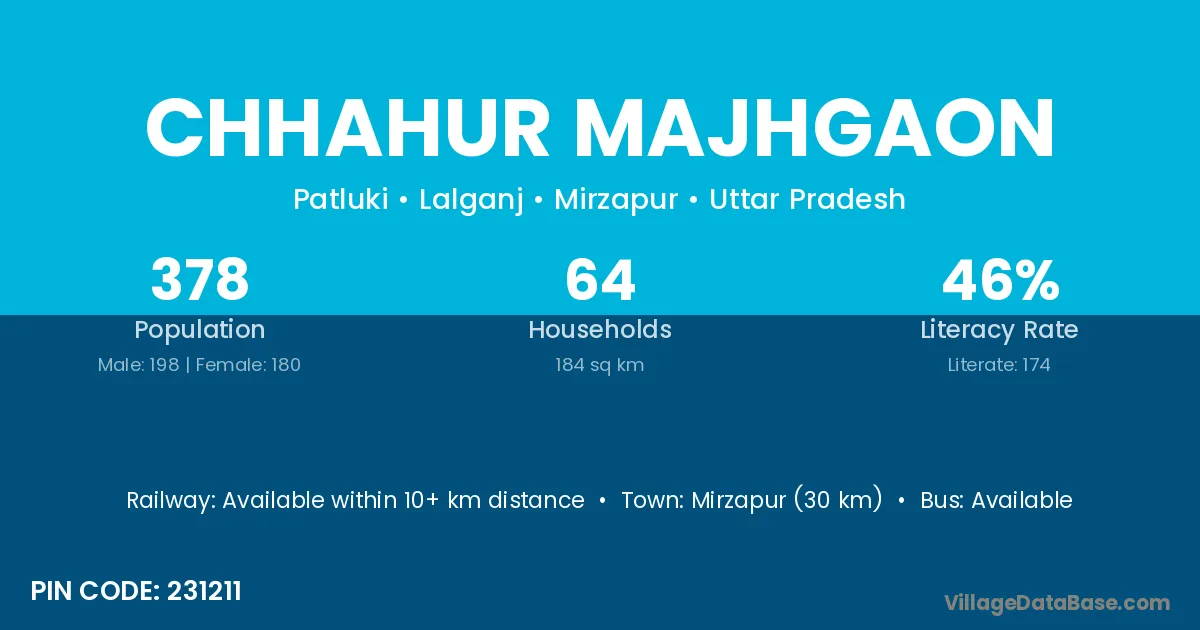 Mirzapur (30 km) is the nearest town to Chhahur Majhgaon village for major economic activities and is located approximately 30 km away.