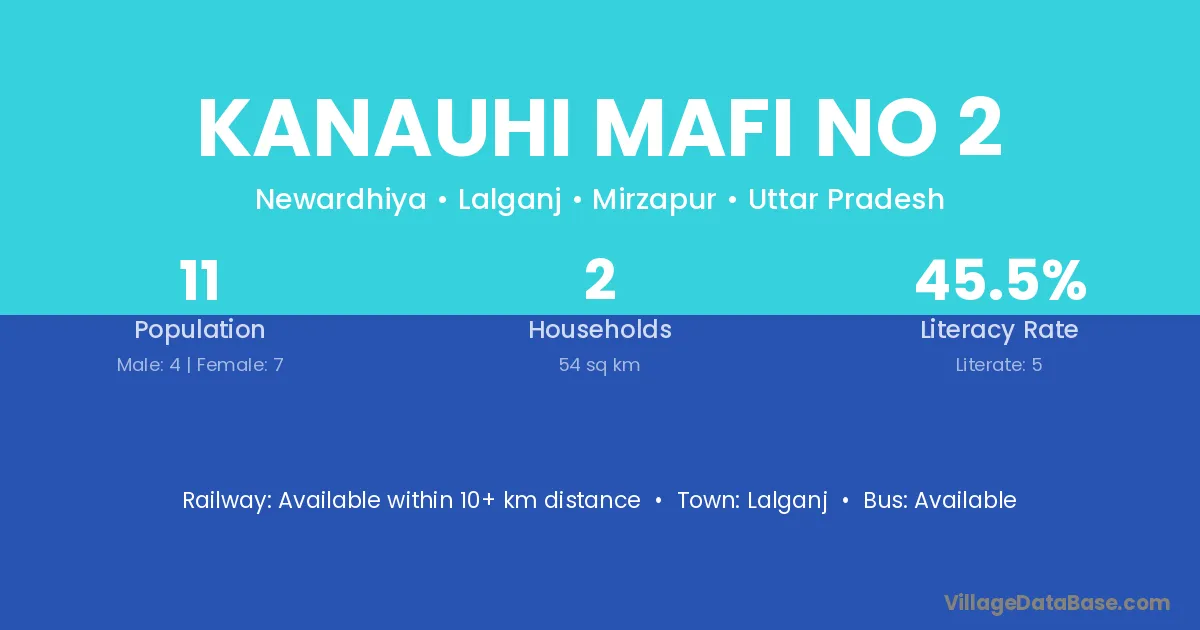 Kanauhi Mafi No 2 village has a total population of 11 people, of which 4 are males and 7 are females.