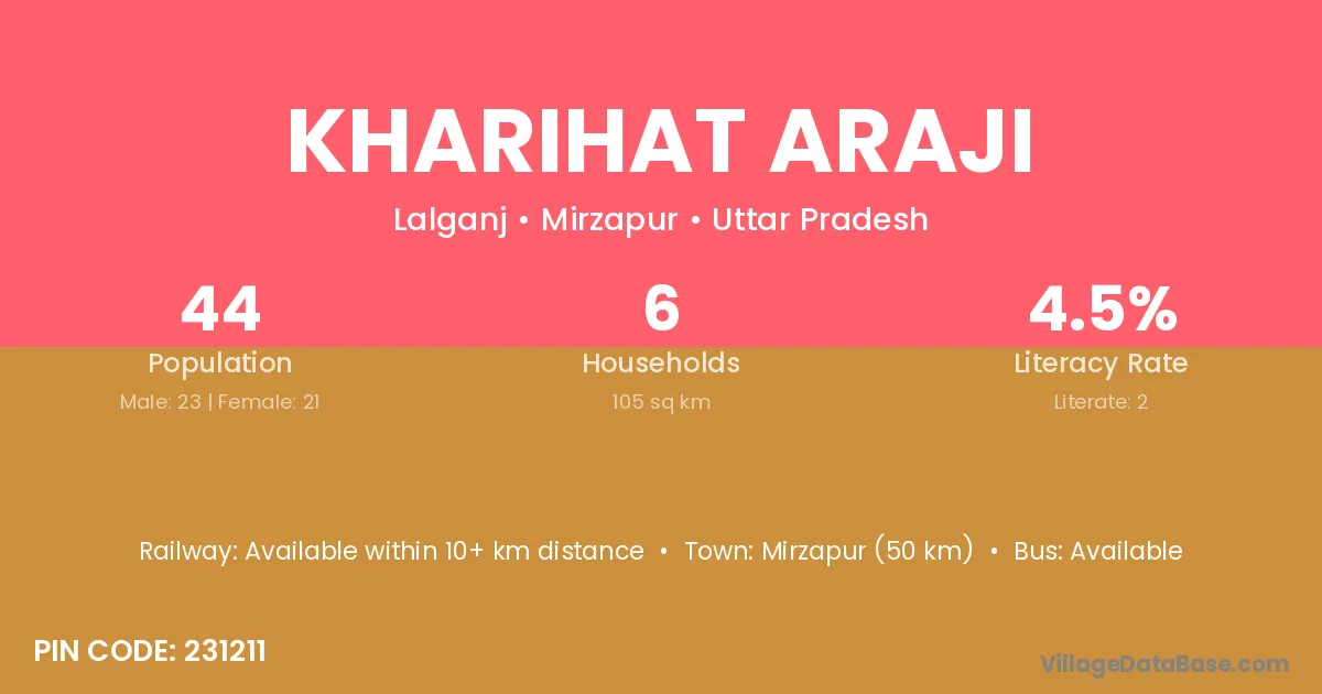 Kharihat Araji village has a total population of 44 people, of which 23 are males and 21 are females.