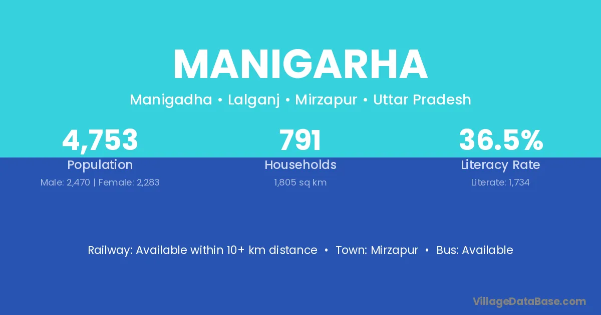 Mirzapur is the nearest town to Manigarha village for major economic activities