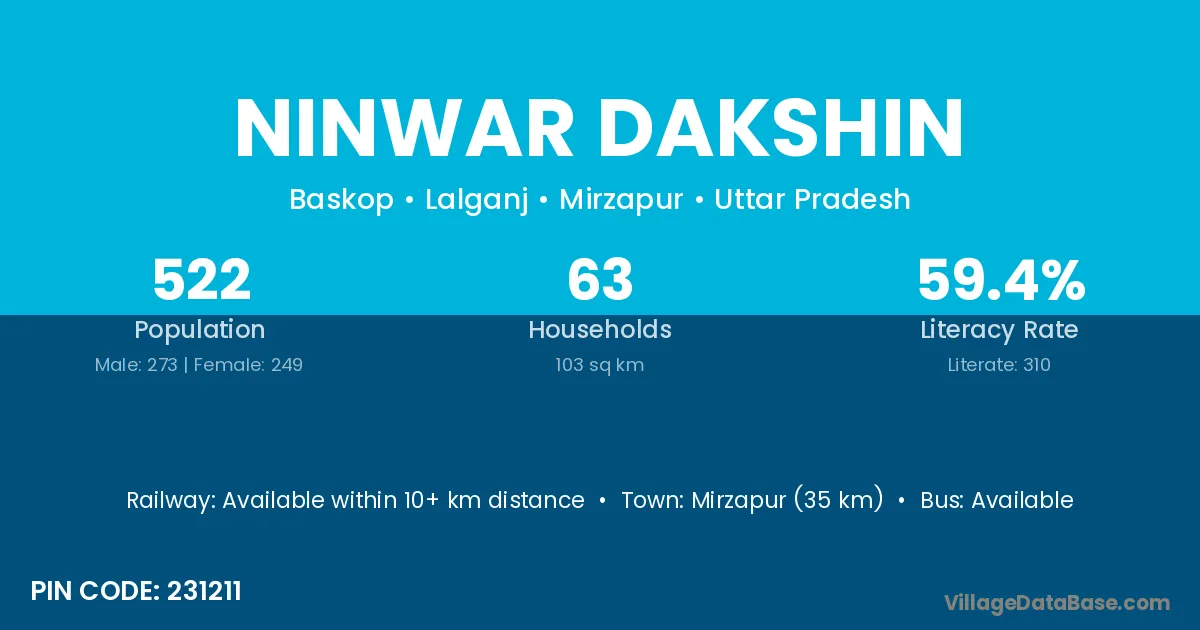 Ninwar Dakshin village has a total population of 522 people, of which 273 are males and 249 are females.