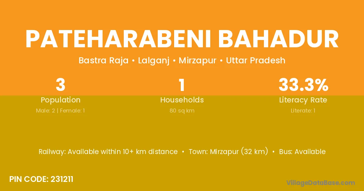 Pateharabeni Bahadur village has a total population of 3 people, of which 2 are males and 1 are females.
