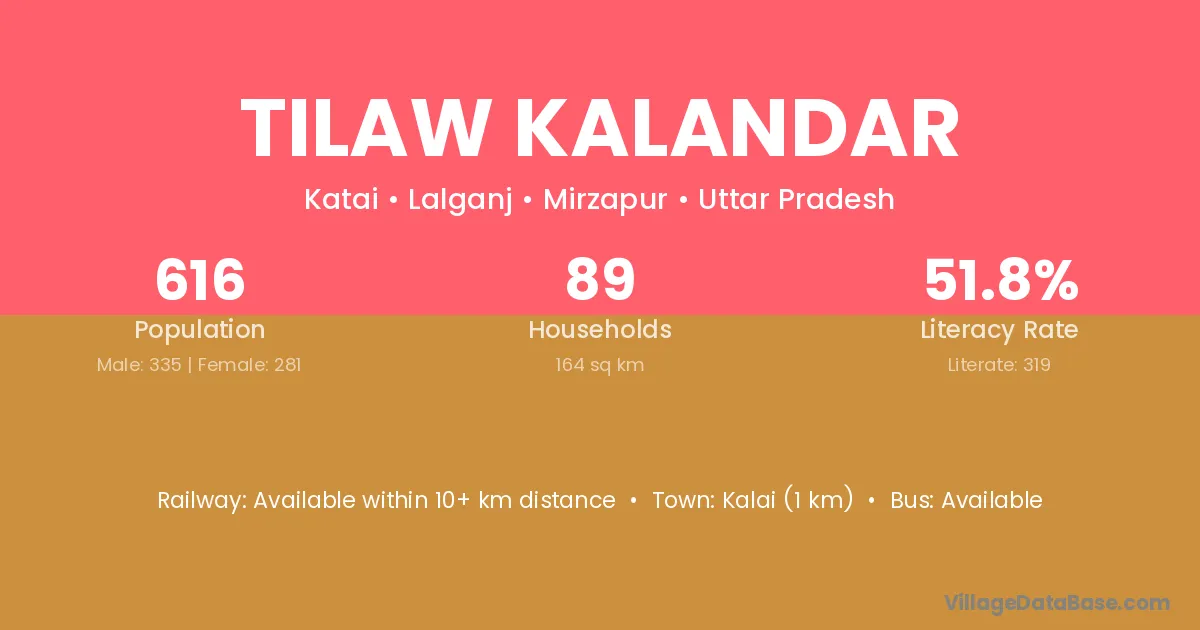 Kalai (1 km) is the nearest town to Tilaw Kalandar village for major economic activities and is located approximately 1 km away.