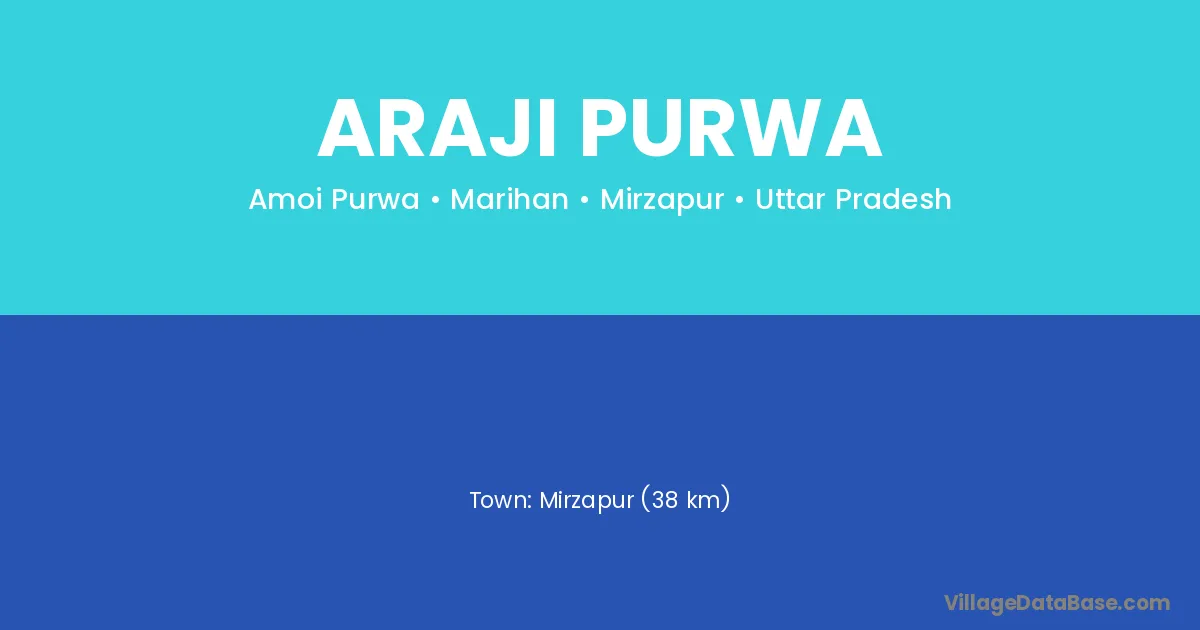 Mirzapur (38 km) is the nearest town to Araji Purwa village for major economic activities and is located approximately 38 km away.