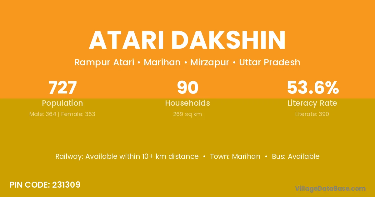 Marihan is the nearest town to Atari Dakshin village for major economic activities