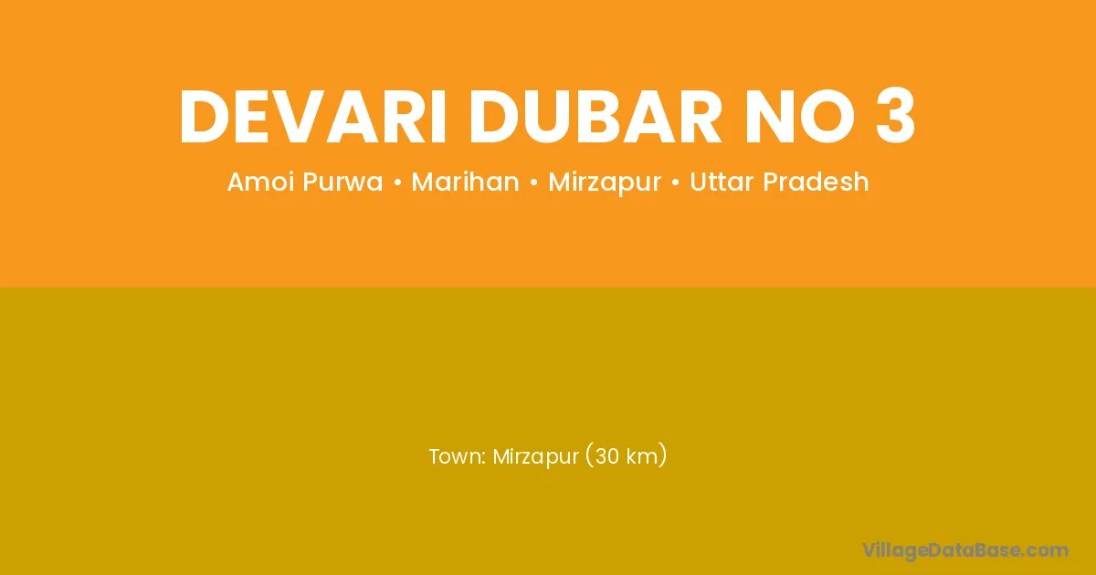 Mirzapur (30 km) is the nearest town to Devari Dubar No 3 village for major economic activities and is located approximately 30 km away.