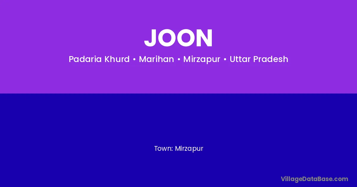 Mirzapur is the nearest town to Joon village for major economic activities