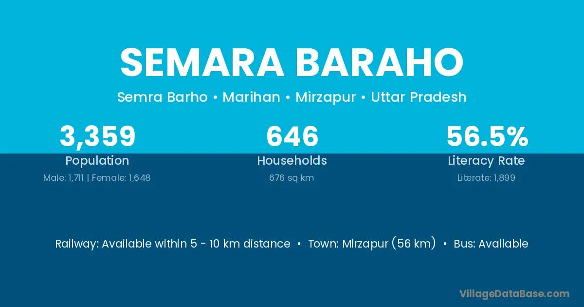 Mirzapur (56 km) is the nearest town to Semara Baraho village for major economic activities and is located approximately 56 km away.
