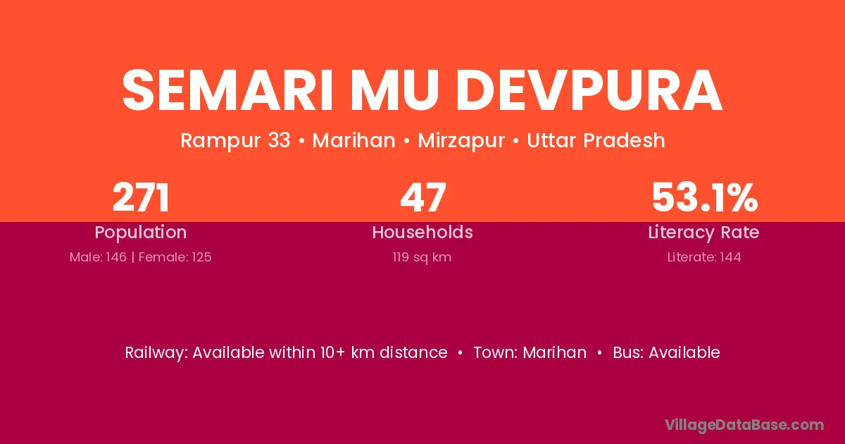 Semari Mu Devpura village has a total population of 271 people, of which 146 are males and 125 are females.