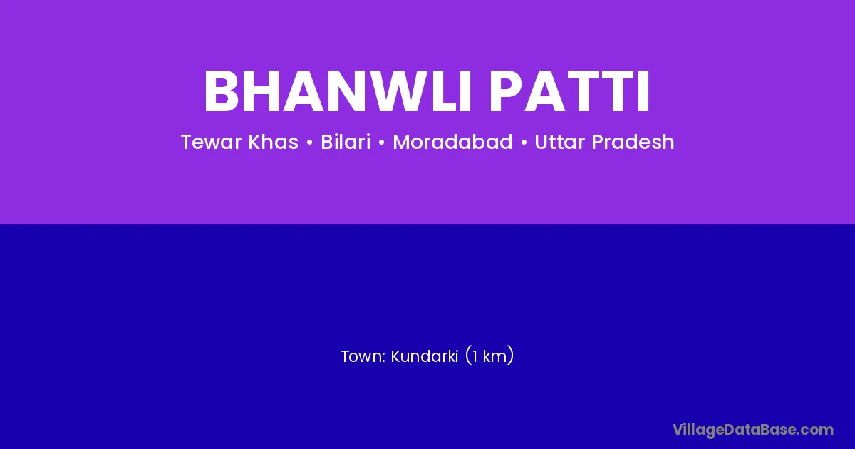 Kundarki (1 km) is the nearest town to Bhanwli Patti village for major economic activities and is located approximately 1 km away.