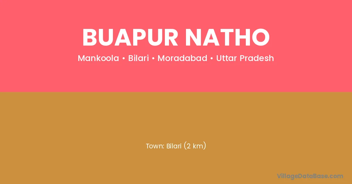 Bilari (2 km) is the nearest town to Buapur Natho village for major economic activities and is located approximately 2 km away.