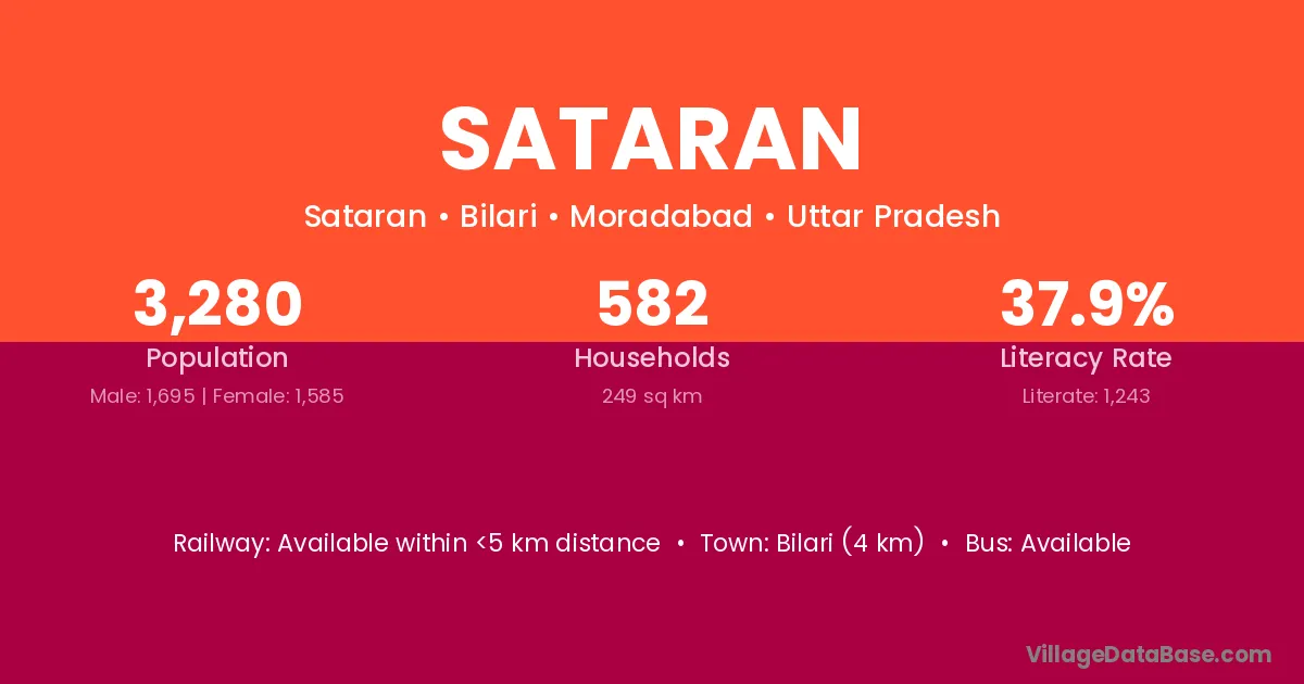 Bilari (4 km) is the nearest town to Sataran village for major economic activities and is located approximately 4 km away.