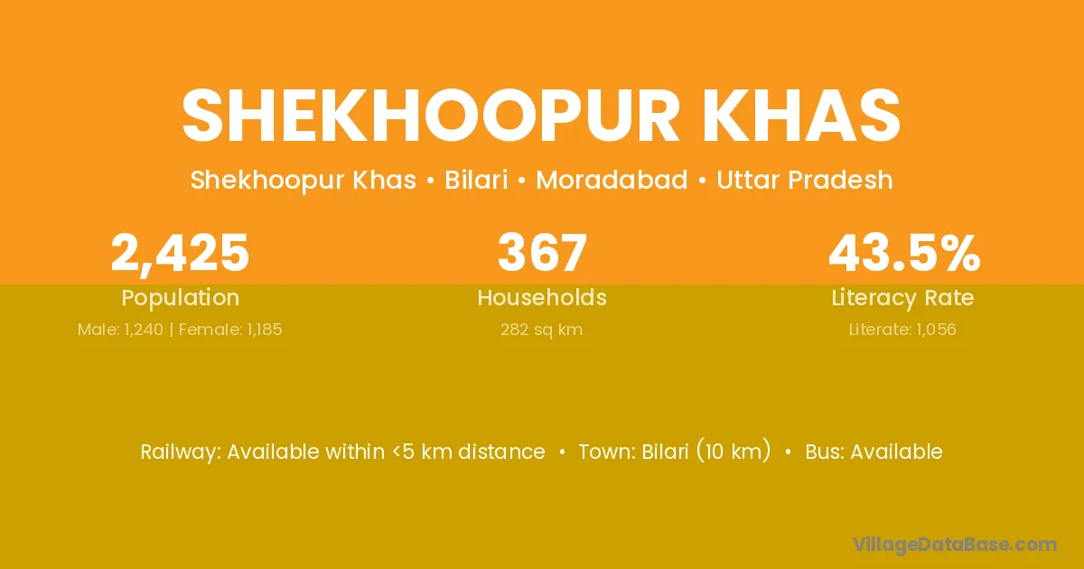 Shekhoopur Khas village has a total population of 2,425 people, of which 1,240 are males and 1,185 are females.