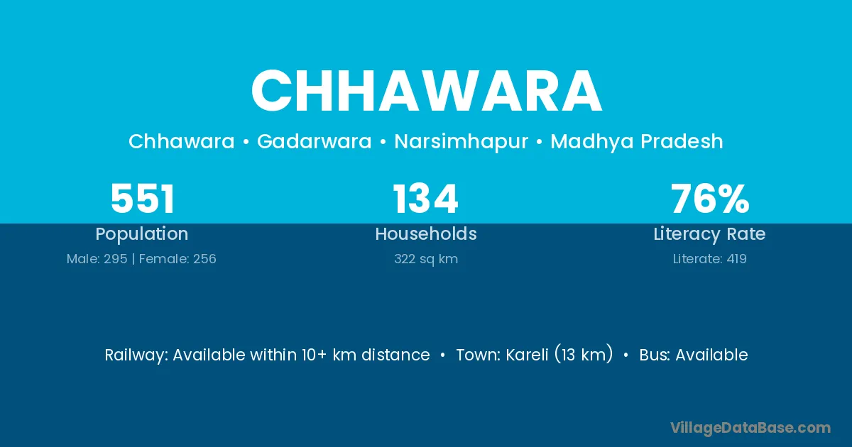 Chandausi (17 km) is the nearest town to Chhawara village for major economic activities and is located approximately 17 km away.