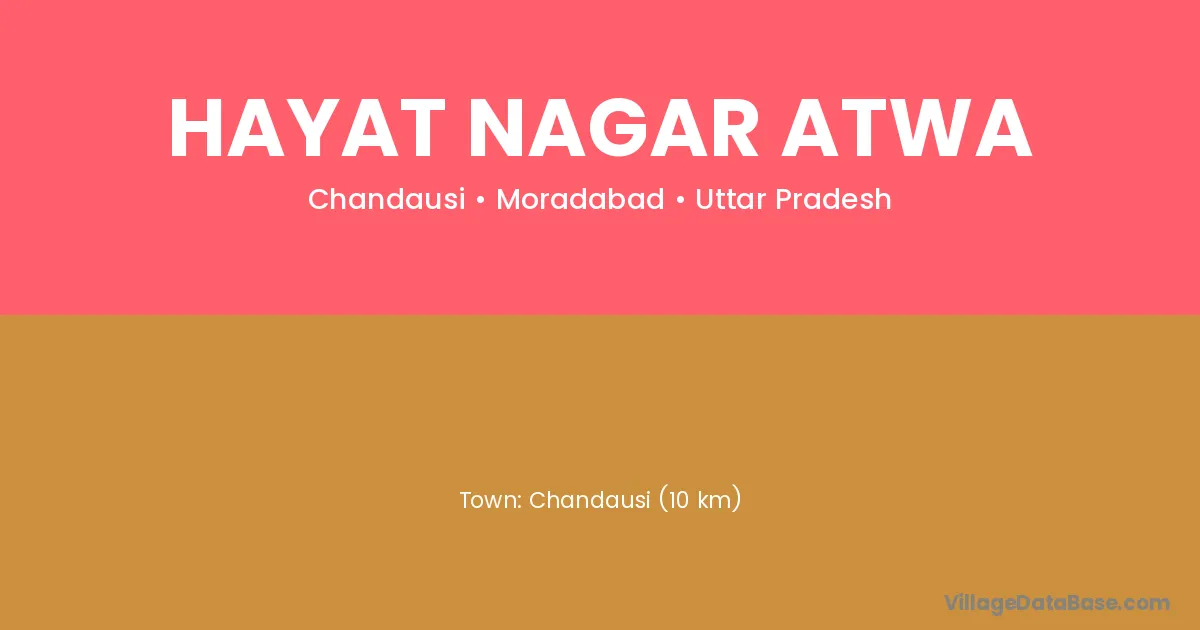 Chandausi (10 km) is the nearest town to Hayat Nagar Atwa village for major economic activities and is located approximately 10 km away.