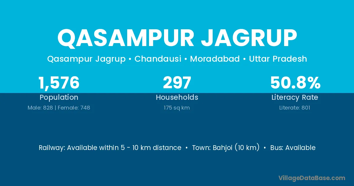 Bahjoi (10 km) is the nearest town to Qasampur Jagrup village for major economic activities and is located approximately 10 km away.