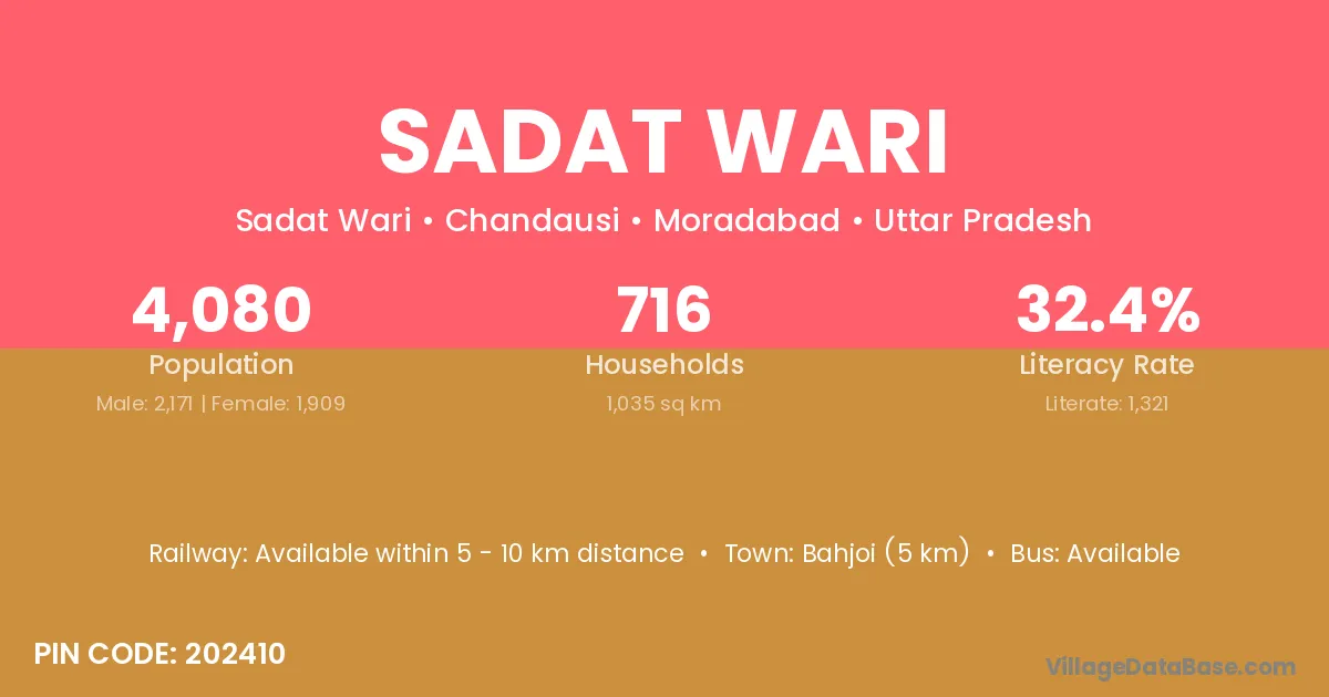 Bahjoi (5 km) is the nearest town to Sadat Wari village for major economic activities and is located approximately 5 km away.