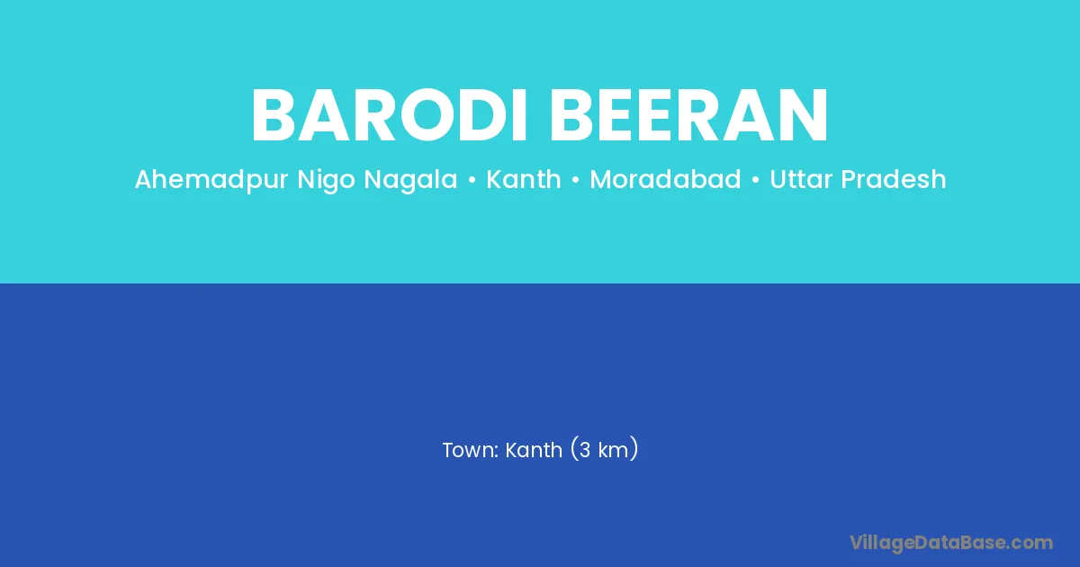Kanth (3 km) is the nearest town to Barodi Beeran village for major economic activities and is located approximately 3 km away.