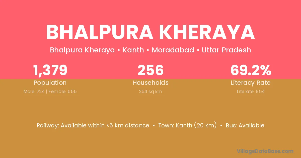 Kanth (20 km) is the nearest town to Bhalpura Kheraya village for major economic activities and is located approximately 20 km away.
