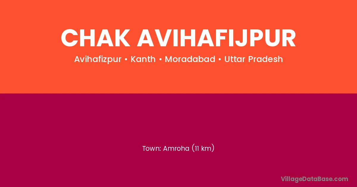 Amroha (11 km) is the nearest town to Chak Avihafijpur village for major economic activities and is located approximately 11 km away.