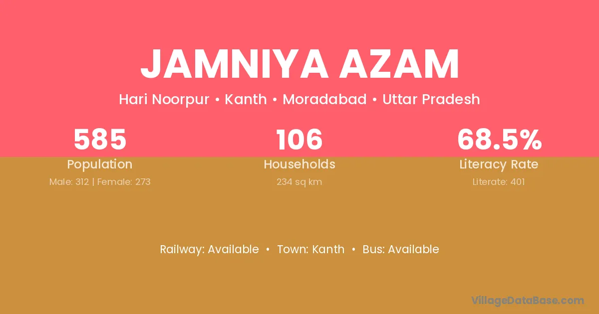 Jamniya Azam village has a total population of 585 people, of which 312 are males and 273 are females.