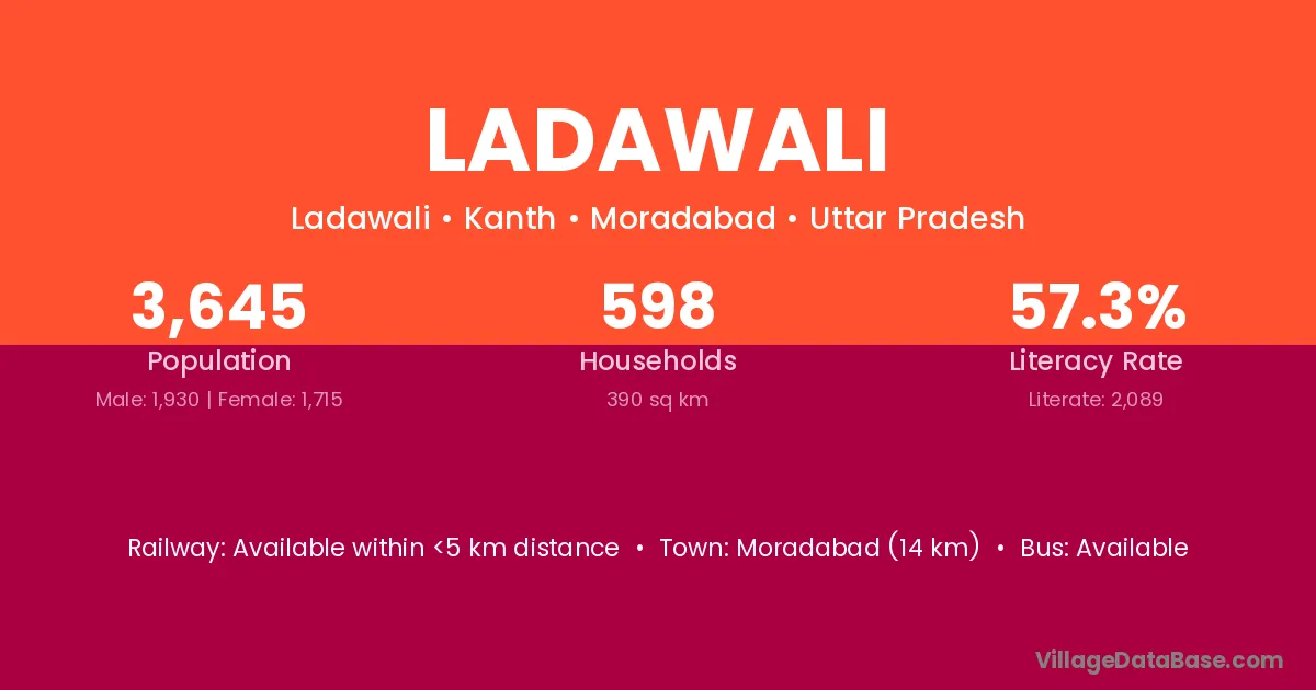 Moradabad (14 km) is the nearest town to Ladawali village for major economic activities and is located approximately 14 km away.