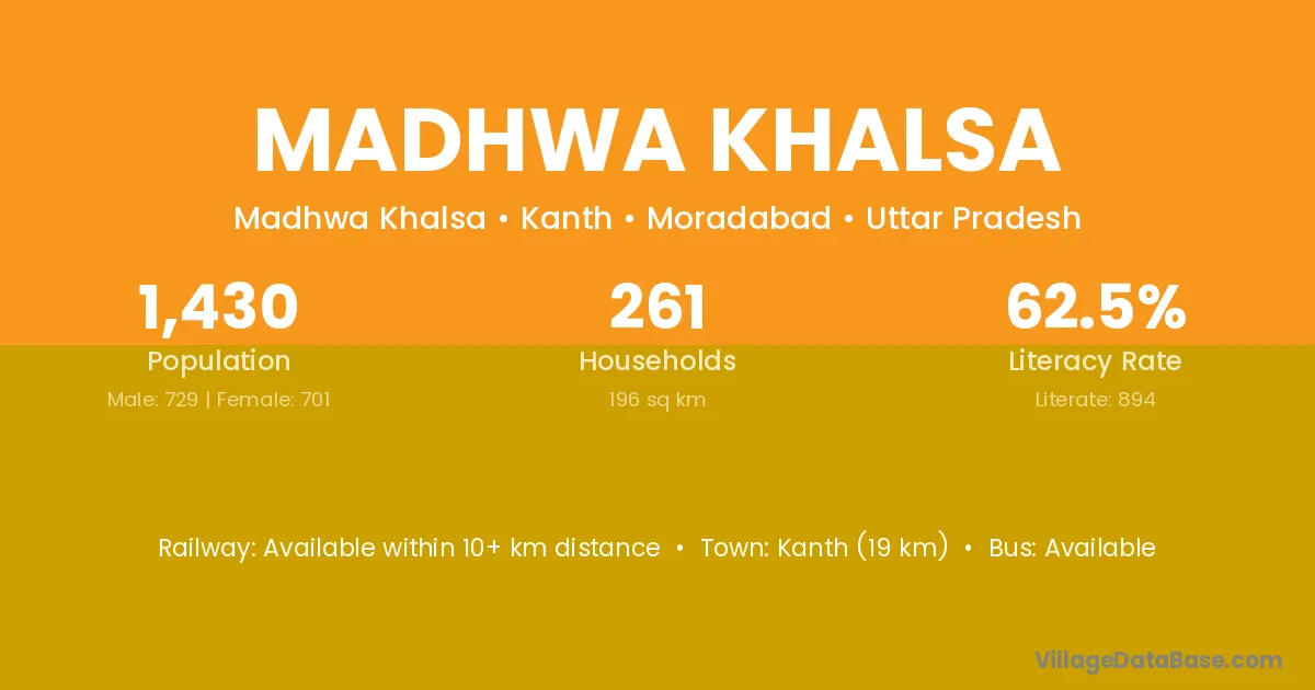 Kanth (19 km) is the nearest town to Madhwa Khalsa village for major economic activities and is located approximately 19 km away.