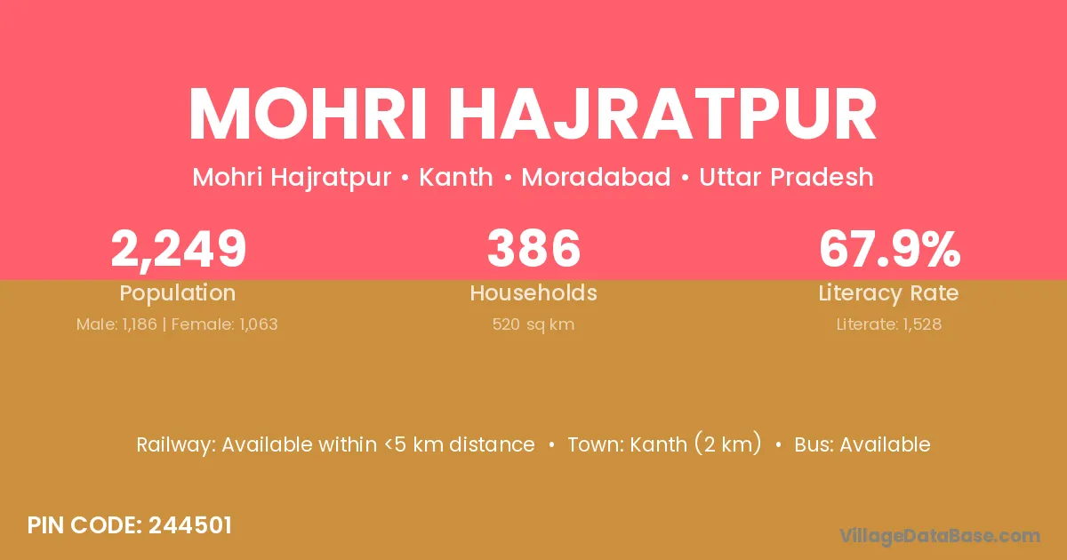 Kanth (2 km) is the nearest town to Mohri Hajratpur village for major economic activities and is located approximately 2 km away.