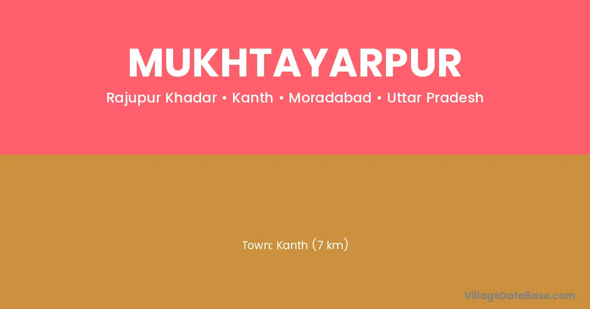 Kanth (7 km) is the nearest town to Mukhtayarpur village for major economic activities and is located approximately 7 km away.