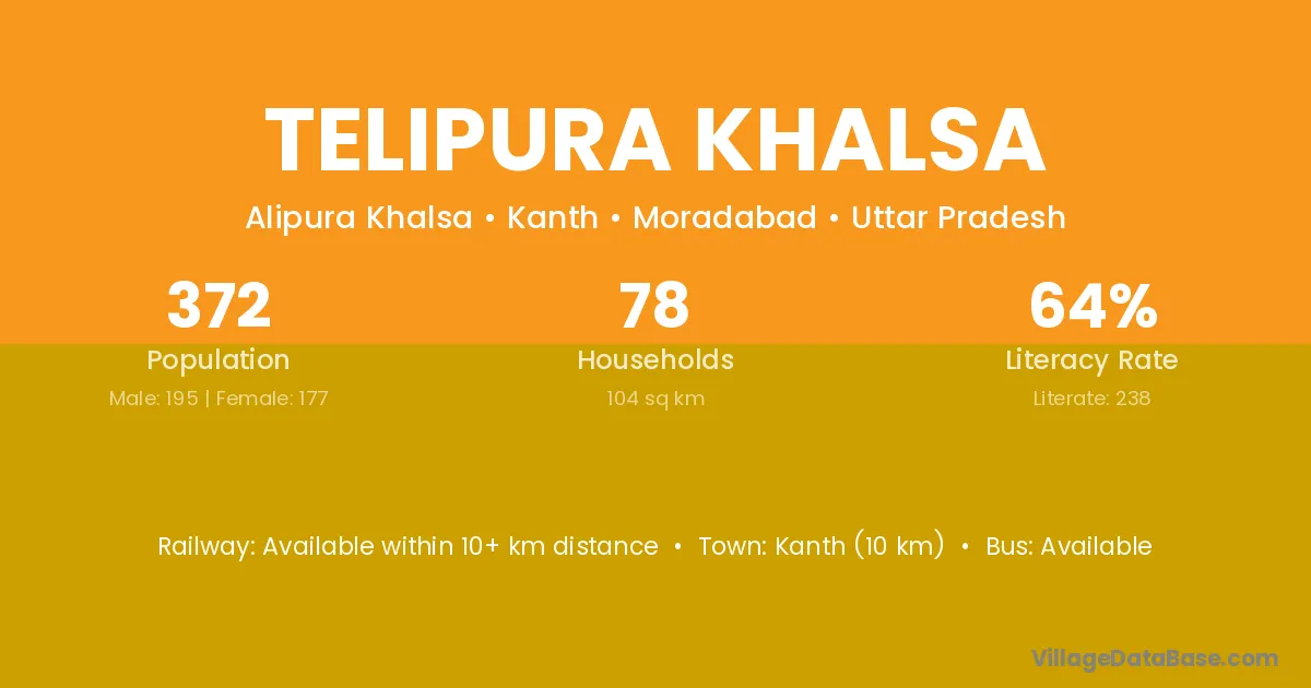 Kanth (10 km) is the nearest town to Telipura Khalsa village for major economic activities and is located approximately 10 km away.