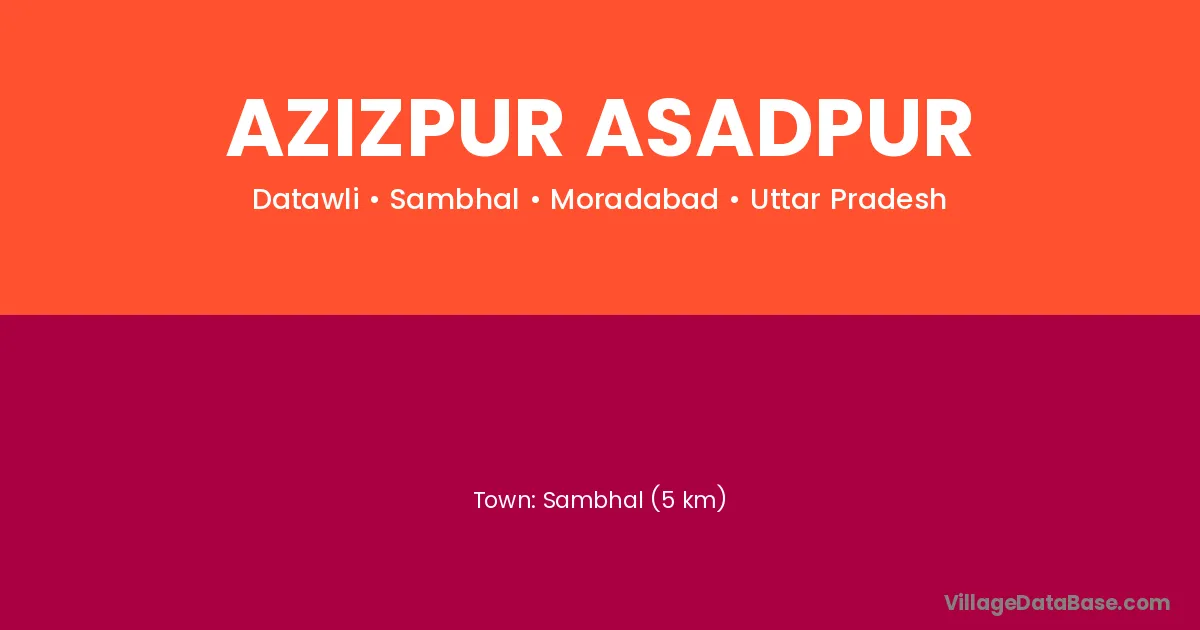 Sambhal (5 km) is the nearest town to Azizpur Asadpur village for major economic activities and is located approximately 5 km away.