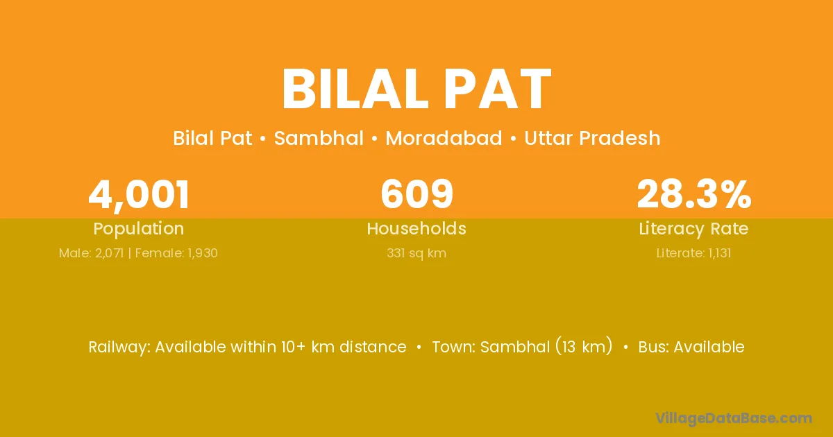 Sambhal (13 km) is the nearest town to Bilal Pat village for major economic activities and is located approximately 13 km away.