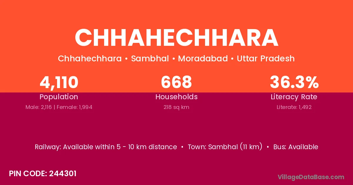 Sambhal (11 km) is the nearest town to Chhahechhara village for major economic activities and is located approximately 11 km away.