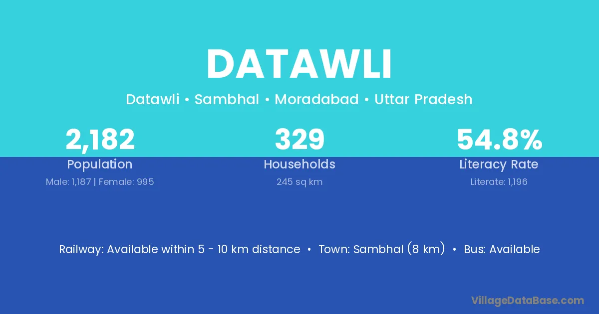 Sambhal (8 km) is the nearest town to Datawli village for major economic activities and is located approximately 8 km away.