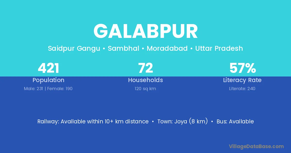 Galabpur village has a total population of 421 people, of which 231 are males and 190 are females.
