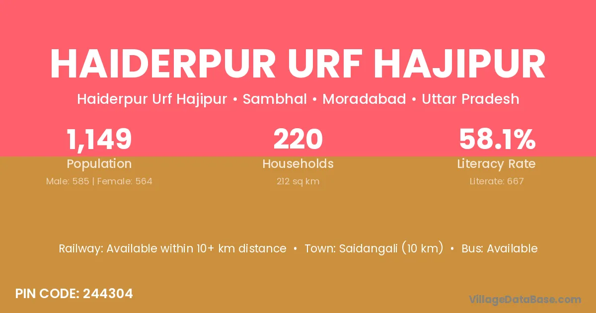 Haiderpur Urf Hajipur village has a total population of 1,149 people, of which 585 are males and 564 are females.